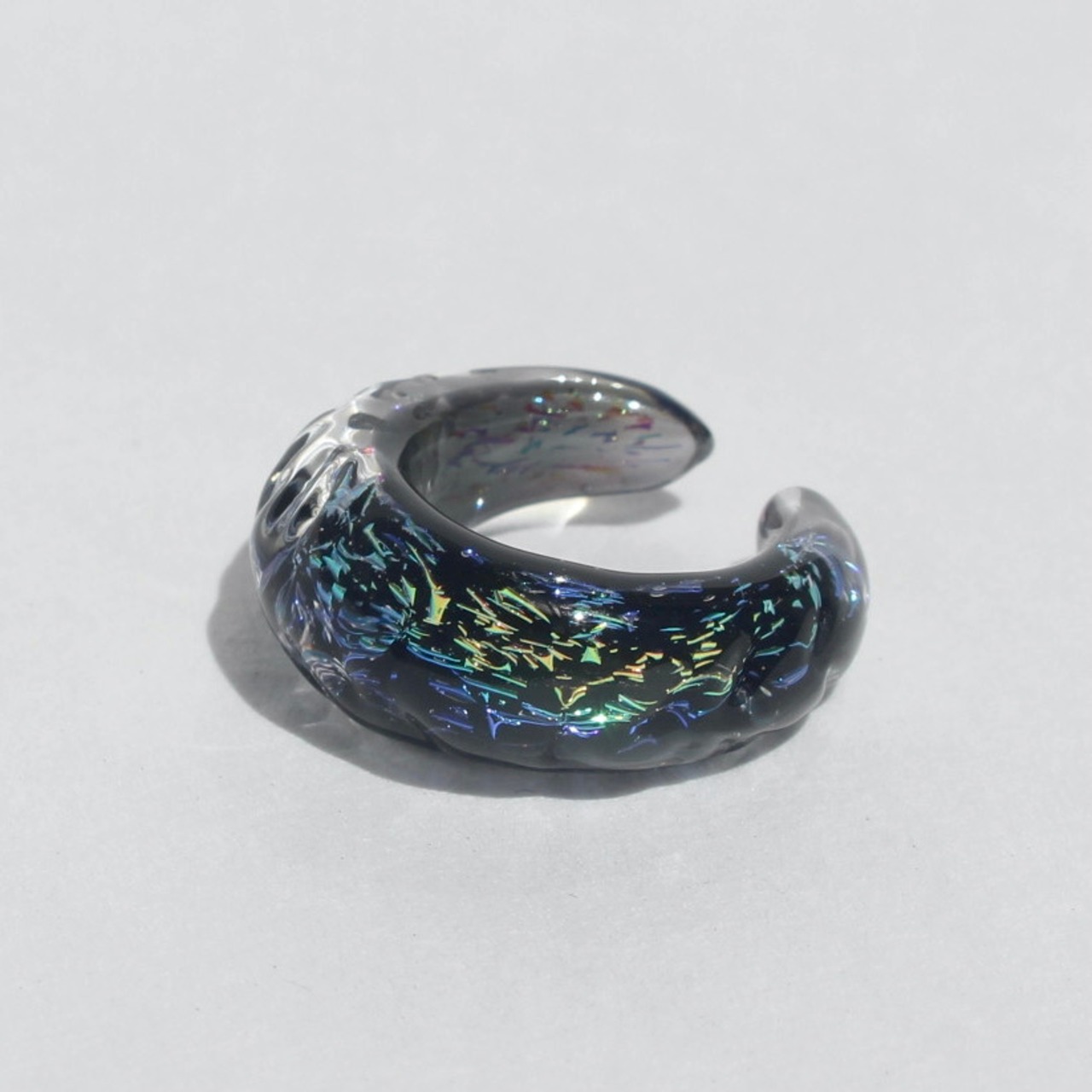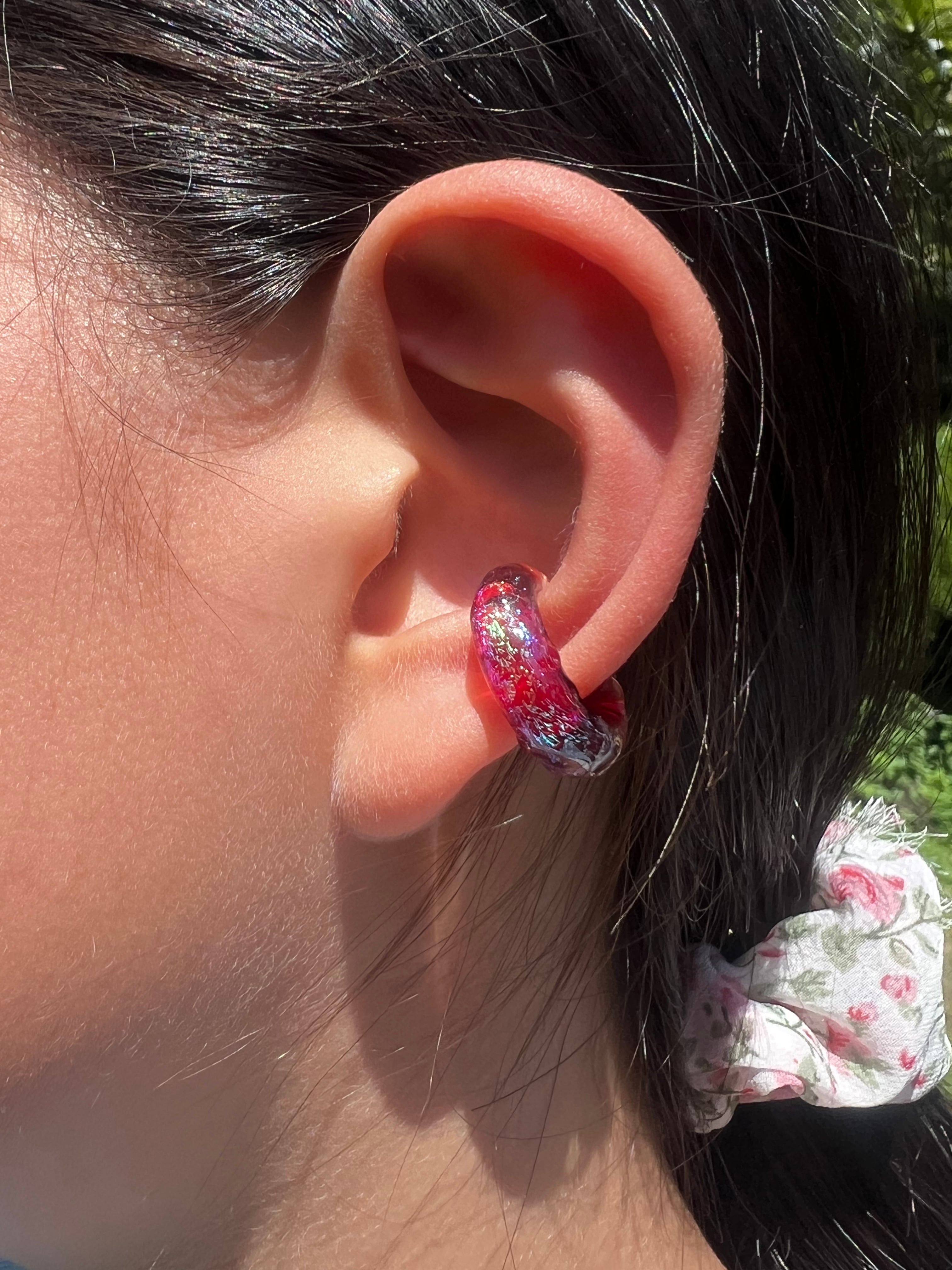 耐熱ガラスを加工し製作したガラスのイヤーカフ。