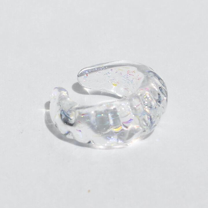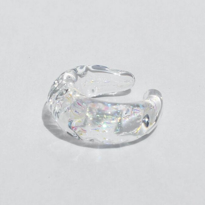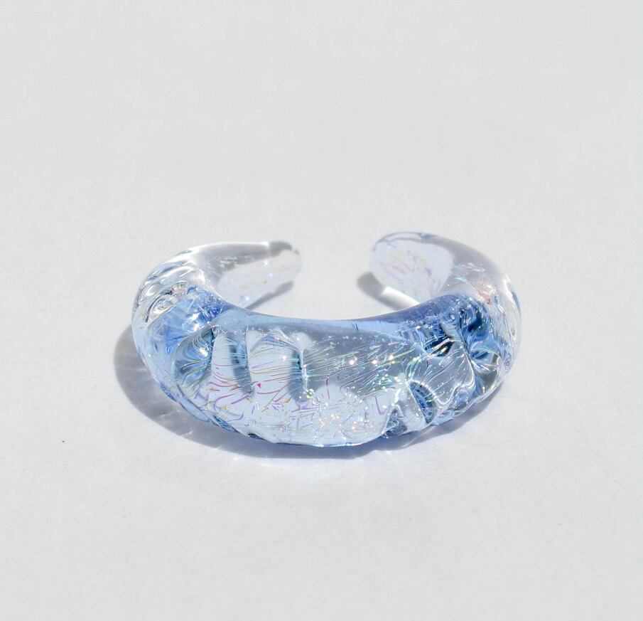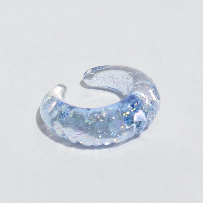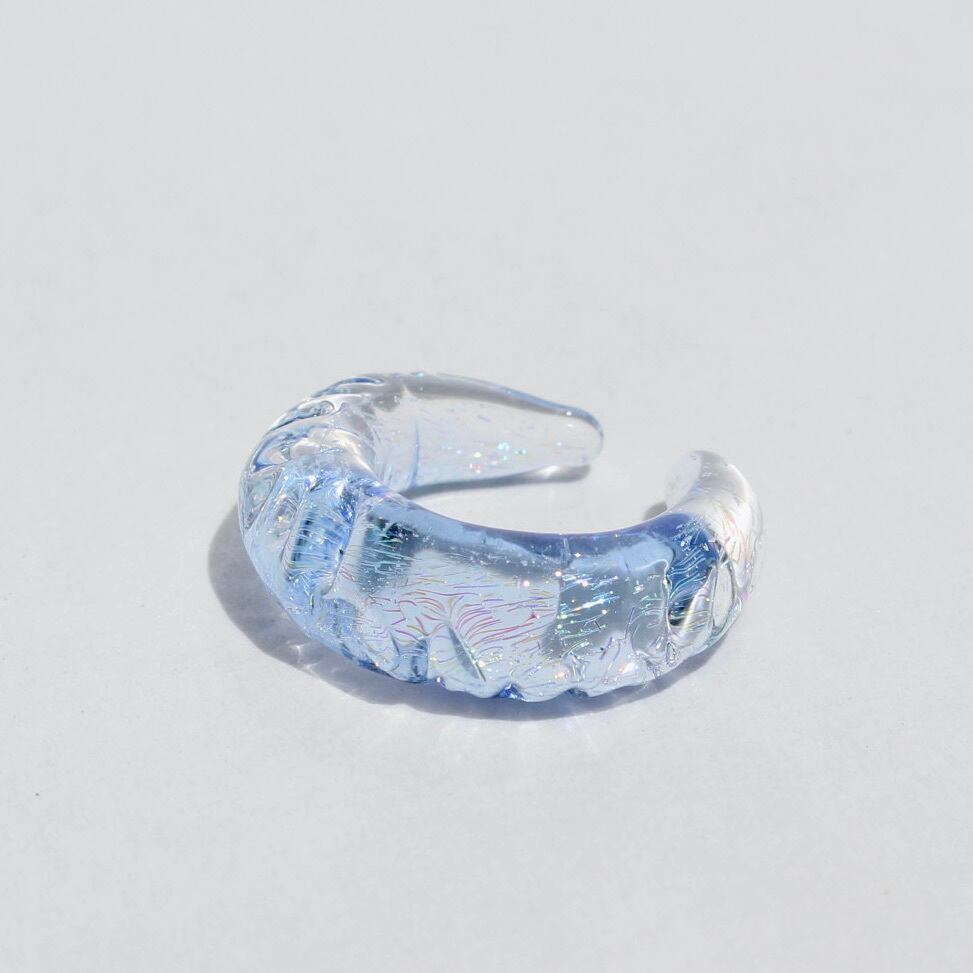 耐熱ガラスを加工し製作したガラスのイヤーカフ。