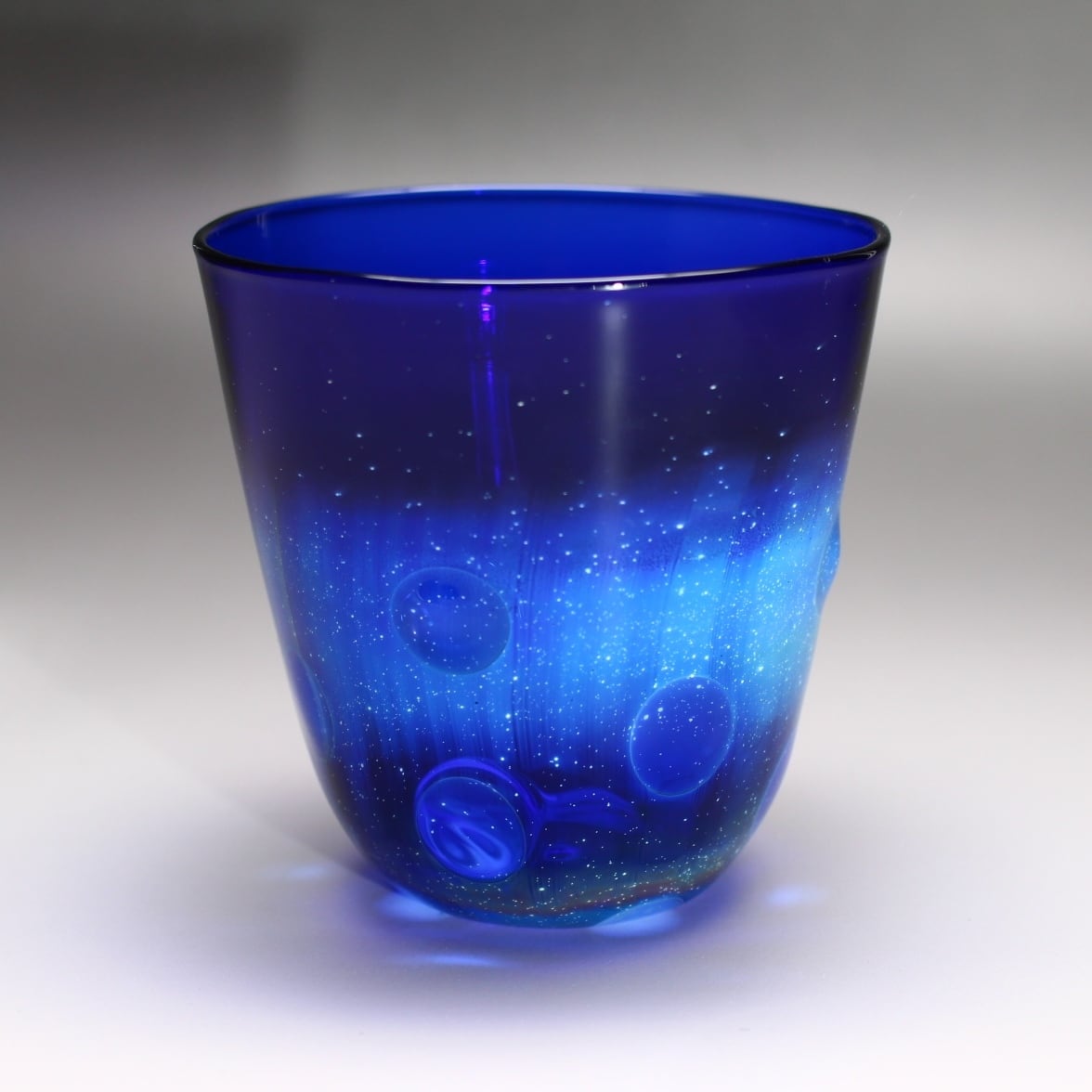 銀を吹き付け色をつけていて光のあたり方によって色合いの変化を
